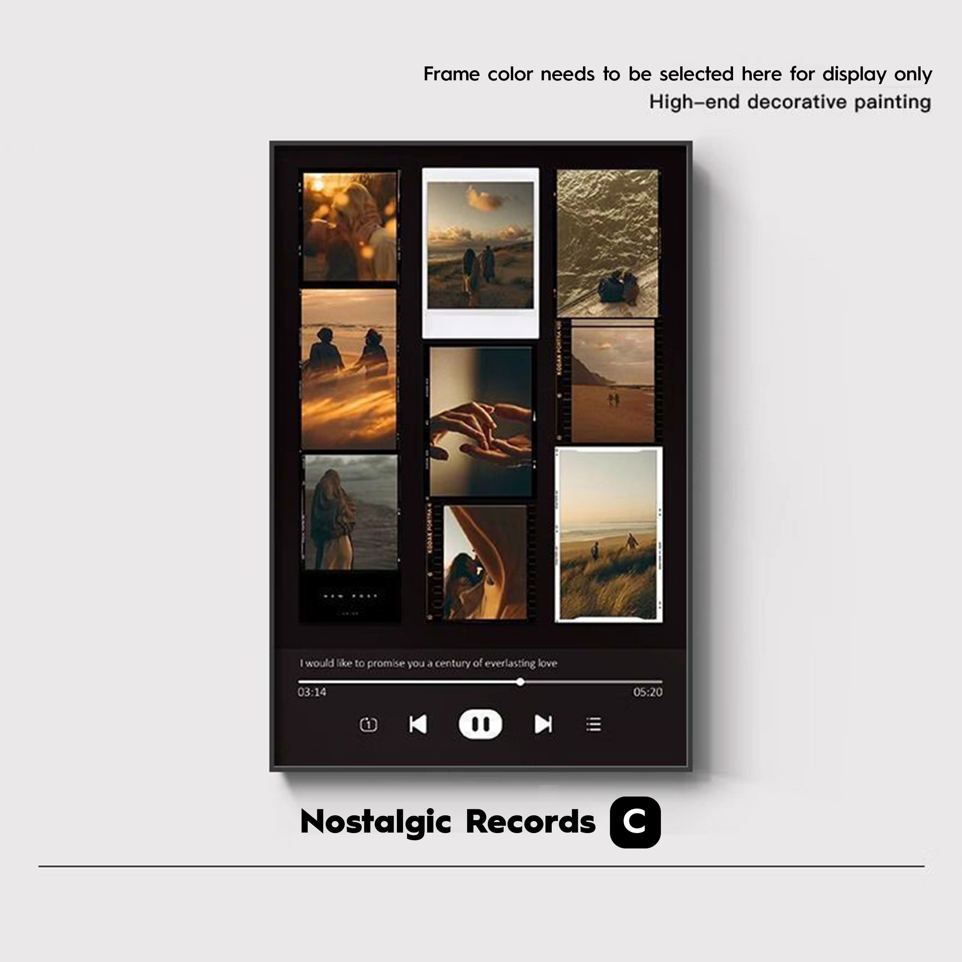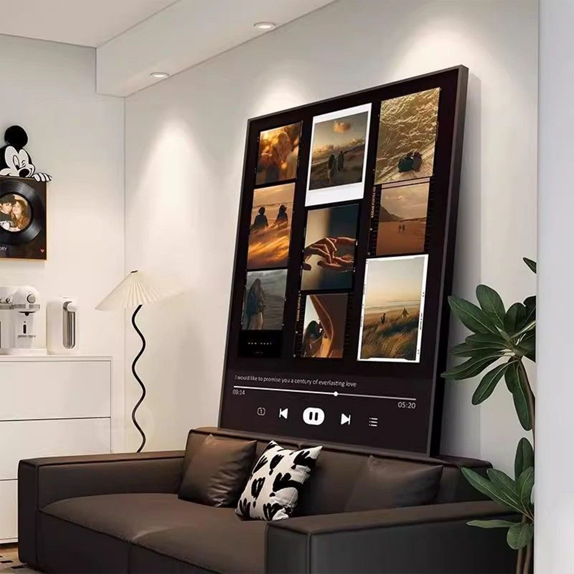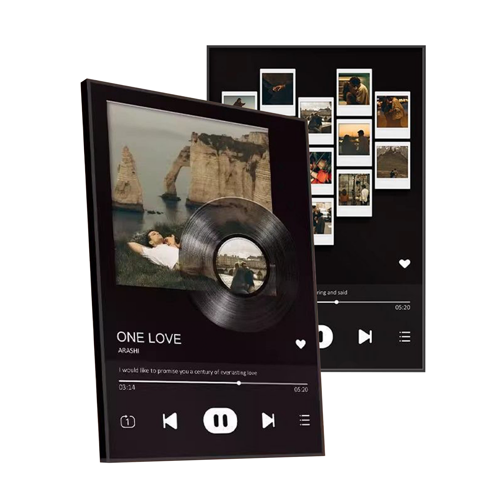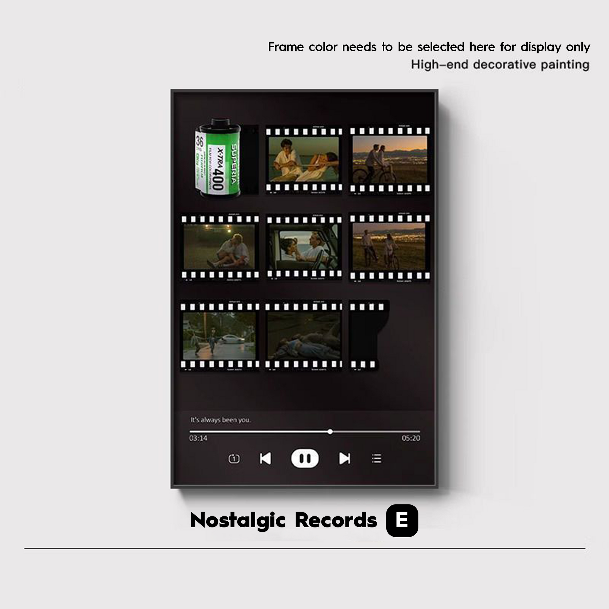 • Customizable Design: Create a unique photo frame by featuring your own selected photos in a stylized film strip or vinyl record layout.